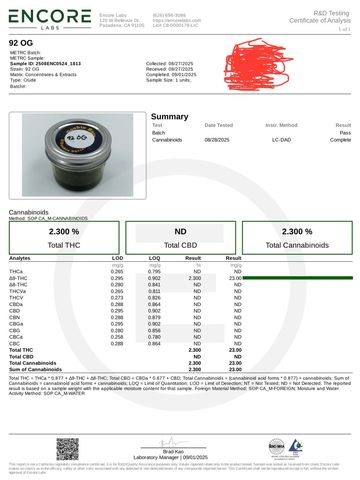 THC results are based on a one fluid oz sample therefore 2,300 x 9,209 mg THC per a 4 fluid oz container